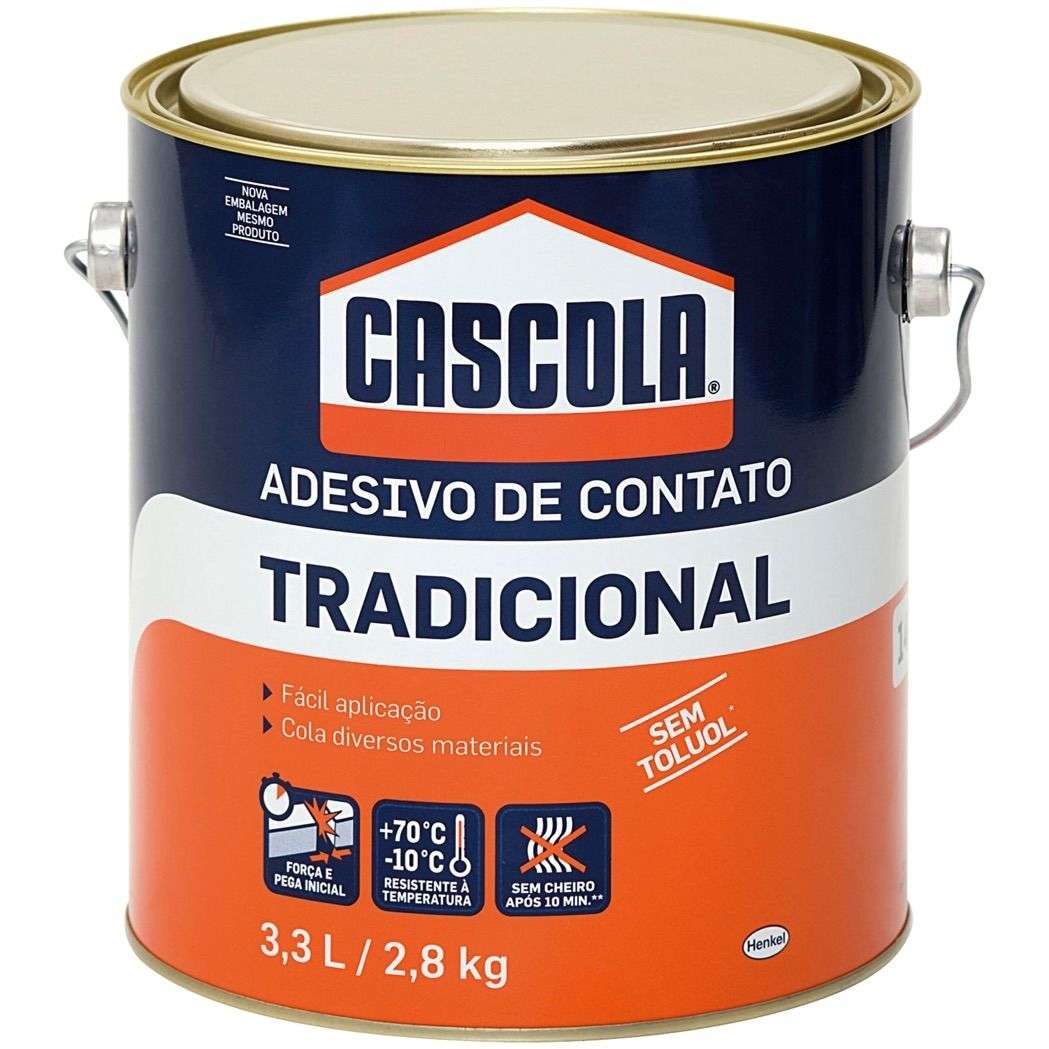 CASCOLA Cola de Contato Tradicional é uma cola de contato de alto desempenho. ideal para diferentes materiais e aplicações. Sua nova fórmula que oferece rendimento 20% maior que a fórmula anterior¹. mantendo a qualidade e performance. Sua fórmula sem Toluol. garante maior segurança para saúde do profissional. Indicado para colagens de lâminas decorativas. couro. lambris e diversos materiais sintéticos sobre materiais como madeira. compensado. aglomerados. MDF. HDF. concreto. cimento etc. ¹Rendimento superior em comparação à formulação anterior. Antes: entre 250 300g por m². Agora: entre 200 250 g por m². Teste de rendimento realizado em substratos de MDF e compensado naval.