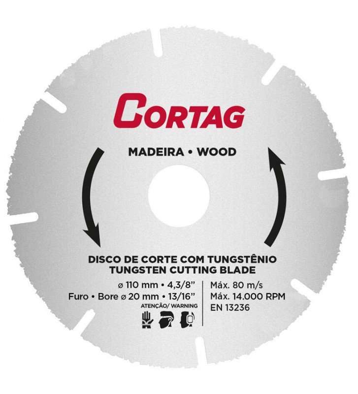 Os discos de corte com tungstênio foi especialmente desenvolvido para ser utilizado para cortar madeira, aglomerado, compensado, MDF, pisos laminados, plásticos e principalmente para uso na construção civil no corte de madeira com pregos ou com resíduos de concreto/ argamassa.