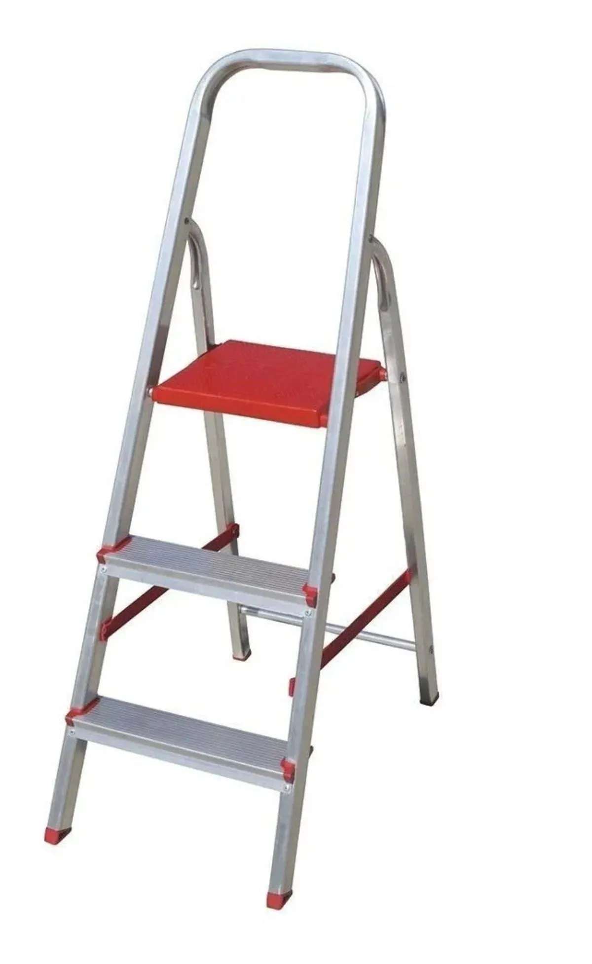 Escada Doméstica em alumínio para uso doméstico. Leve e prática, é essencial para o dia-a-dia. Com apenas 10 cm quando dobrada é bem fácil de guardar. Seu patamar de polipropileno de alta resistência dá segurança para o trabalho diário.