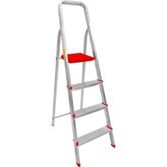 Escada Doméstica em alumínio para uso doméstico. Leve e prática, é essencial para o dia-a-dia. Com apenas 10 cm quando dobrada é bem fácil de guardar. Seu patamar de polipropileno de alta resistência dá segurança para o trabalho diário.