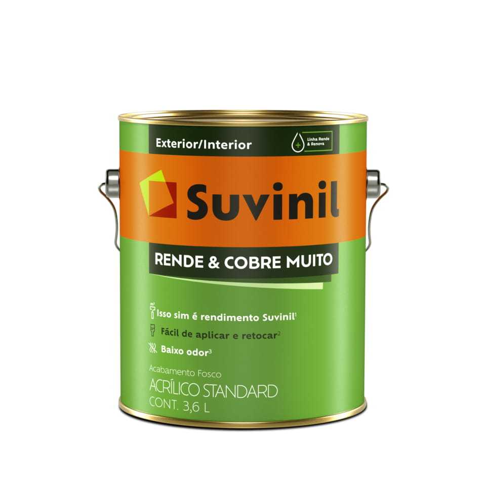 Suvinil Rende & Cobre Muito é a tinta que rende mais. O produto possui baixo odor, uma ótima cobertura e um excelente rendimento e ainda é fácil de espalhar. A Rende & Cobre Muito tem uma ótima consistência, o que facilita a aplicação após a sua diluição. Uma tinta fosca com 20 opções de cores para você pintar.