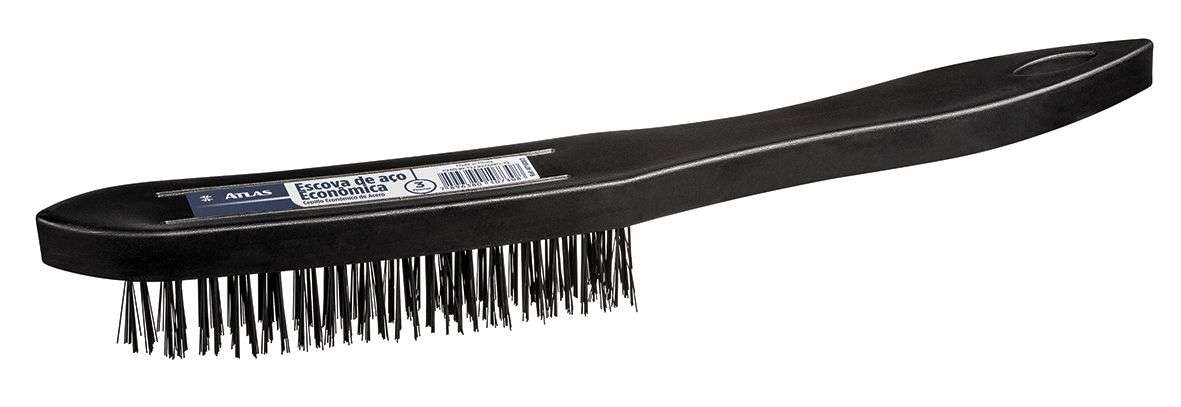 Escova de aço econômica 6fileiras. As cerdas em aço para o trabalho pesado de lixar, remover tintas e preparar superfícies, enquanto seu cabo plástico com maior durabilidade. Ideal para limpeza em geral e textura escovado.
