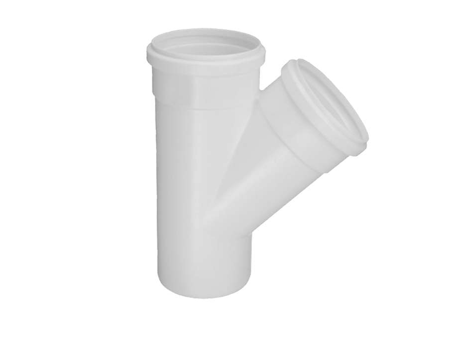 Realizar a união entre dois trechos da rede em que a entrada se dê a 45° da linha onde a junção foi instalada, sem alteração de diâmetro.