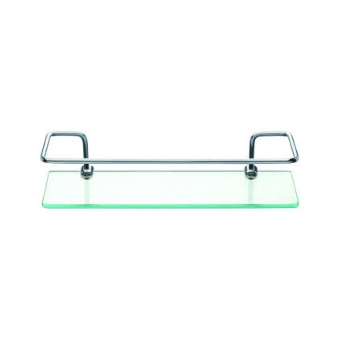 Prateleira de vidro com bordas lapidadas e haste metálica. Acompanha parafusos, buchas e suportes de metal cromado. Fácil de instalar e limpar. Ideal para colocar objetos pequenos como velas, vasos, plantas, porta-retratos e temperos
