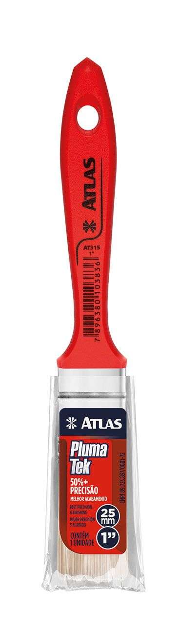 Trincha média de cerdas sintéticas com tecnologia Plumatek de fios formato estrelado. Melhor acabamento, maior durabilidade e recortes mais precisos para todo o tipo de tinta.
